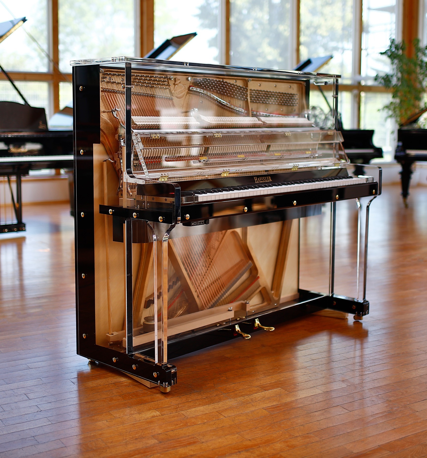 iDyllic Upright was designed with you in mind. Fun, bold, and infinitely visual, the entire body of this upright is transparent, displaying the beauty and genius of the piano's inner workings from all angles. With customisable trim material, cast-iron plate color, and metal hardware, this space-conscious transparent piano may emit a very distinct vibe.